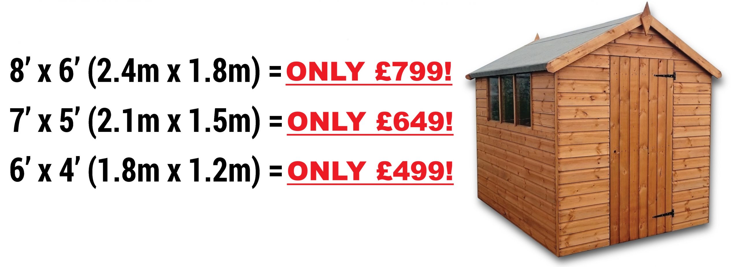 We sell 100% solid pine, tongue & groove shiplap garden sheds at low prices!